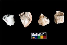 | Description / विवरण | Four utilised worked cores with sharp edges. Some of them are tapering at one end. Removal of flakes from few sides. |