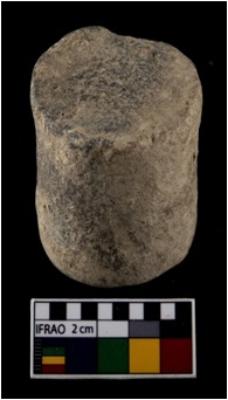 | Description / विवरण | A complete specimen of a thick size terracotta cylindrical object with short body, smooth surface, and flat ends. It is devoid any kind of wash. It is fine in fabric and well fired, grey ware. Probably a stopper. |