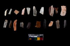 | Description / विवरण | There are n-20 of microliths, among them 4 are quartz, and 16 are of chert. Some of them are partially broken. They show variation in colour, size and shape. Some of them are blunted back blades, points, triangles, trapezes, crescent and truncated blades. |