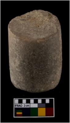 | Description / विवरण | A complete specimen of a thick size terracotta cylindrical object with short body, smooth surface, and flat ends. It is devoid any kind of wash. It is medium in fabric and well fired, grey ware. Probably a stopper. |