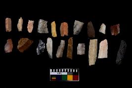 | Description / विवरण | There are n-20 of microliths, among them 2 are quartz, and 18 are of chert. Some of them are partially broken. They show variation in colour, size and shape. Some of them are blunted back blades, points, triangles, trapezes, crescent and truncated blades. |