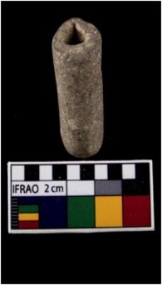 | Description / विवरण | A complete specimen of a small size terracotta cylindrical object with elongated body, smooth surface, and flat end. It is having a perforation at its base. It is devoid any kind of wash. It is fine in fabric and well fired, grey ware. Probably a stopper. |