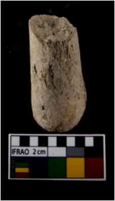 | Description / विवरण | A partially broken specimen of a medium size terracotta cylindrical fragment with elongated body, rough surface, slightly tapering sides and flat end. It is devoid any kind of wash. It is medium in fabric and well fired, red ware. Probably a stopper. |