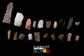 | Description / विवरण | There are n-20 of microliths, among them 4 are quartz, and 16 are of chert. Some of them are partially broken. They show variation in colour, size and shape. Some of them are blunted back blades, points, triangles, trapezes, crescent and truncated blades. |