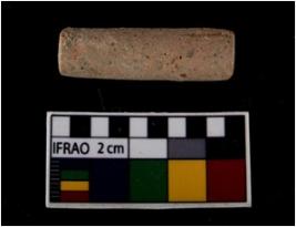 | Description / विवरण | A complete specimen of a small size terracotta cylindrical object with elongated body, rough surface, and flat ends. It is devoid any kind of wash. It is fine in fabric and well fired, red ware. Probably a stopper. |