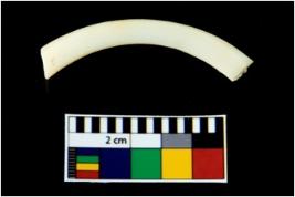 | Description / विवरण | A broken fragment of an undecorated shell bangle. It is creamish in colour with rectangular cross section. |