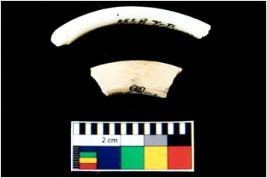 | Description / विवरण | A broken fragment of an undecorated shell bangle. It is blackish in colour with rectangular cross section. |