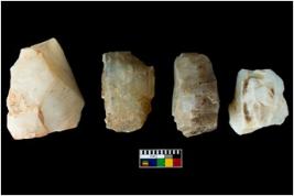 | Description / विवरण | Four worked utilised cores. Flakes removed from few sides. Most of them are uneven and few are tapering at one end. |