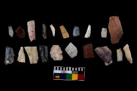 | Description / विवरण | There are n-20 of microliths, among them 3 are quartz, and 17 are of chert. Some of them are partially broken. They show variation in colour, size and shape. Some of them are blunted back blades, points, triangles, trapezes, crescent and truncated blades. |