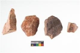 | Description / विवरण | A specimen of flake tool with prominent flaking marks. It made up of a short flakes with sides trimmed. It is rectangular in shaped |