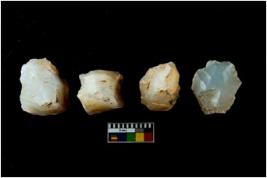 | Description / विवरण | Four worked utilised cores. Flakes removed from few sides. Most of them are uneven and few are tapering at one end. |