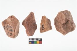 | Description / विवरण | A specimen of flake tool with prominent flaking marks. It made up of a short flakes with sides trimmed. It is rectangular in shaped |