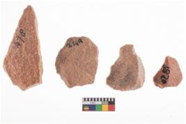 | Description / विवरण | A specimen of flake tool with prominent flaking marks. It made up of a short flakes with sides trimmed. It is rectangular in shaped |
