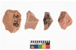 | Description / विवरण | A specimen of flake tool with prominent flaking marks. It made up of a short flakes with sides trimmed. It is rectangular in shaped |