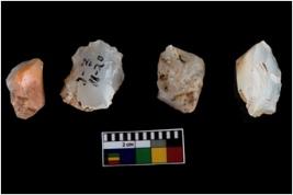 | Description / विवरण | Four worked utilised cores from which blades removed from almost all the sides. |