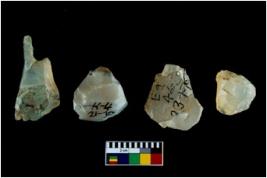 | Description / विवरण | Four worked utilised cores. Flakes removed from few sides. Most of them are uneven and few are tapering at one end. |