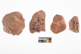 | Description / विवरण | A specimen of flake tool with prominent flaking marks. It made up of a short flakes with sides trimmed. It is rectangular in shaped |