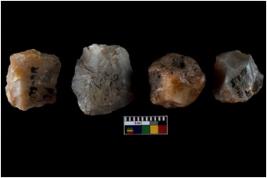 | Description / विवरण | Four worked utilised cores from which blades removed from almost all the sides. |