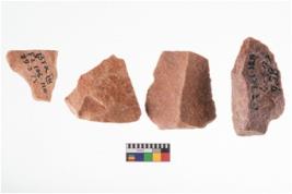 | Description / विवरण | A specimen of flake tool with prominent flaking marks. It made up of a short flakes with sides trimmed. It is rectangular in shaped |