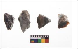 | Description / विवरण | Four utilised worked cores with sharp edges. Flakes removed from almost all the sides. Some are tapering at one end. |