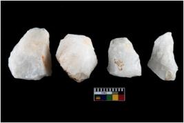 | Description / विवरण | A specimen of a fluted core having several broad fluted marks indicating the detached blades from it |