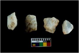 | Description / विवरण | Four worked utilised cores. Flakes removed from few sides. Most of them are uneven and few are tapering at one end. |