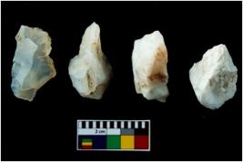 | Description / विवरण | Four worked utilised cores. Flakes removed from few sides. Most of them are uneven and few are tapering at one end. |