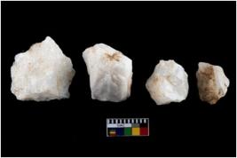 | Description / विवरण | A specimen of a fluted core having several broad fluted marks indicating the detached blades from it |
