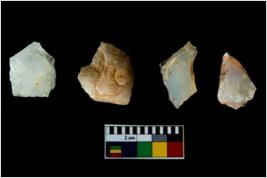 | Description / विवरण | Four worked utilised cores. Flakes removed from few sides. Most of them are uneven and few are tapering at one end. |