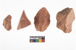 | Description / विवरण | A specimen of flake tool with prominent flaking marks. It made up of a short flakes with sides trimmed. It is rectangular in shaped |