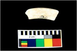 | Description / विवरण | A broken fragment of a decorated shell bangle. It is creamish in colour with rectangular cross section. |