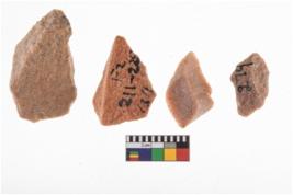 | Description / विवरण | A specimen of flake tool with prominent flaking marks. It made up of a short flakes with sides trimmed. It is rectangular in shaped |