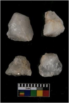 | Description / विवरण | There are n-4 of cores. All of them are intact fully fluted cores without any trace of crested ridge flakes made up of Quartz. |
