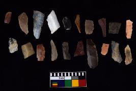 | Description / विवरण | There are n-20 of microliths, among them 2 are quartz, and 18 are of chert. Some of them are partially broken. They show variation in colour, size and shape. Some of them are blunted back blades, points, triangles, trapezes, crescent and truncated blades. |