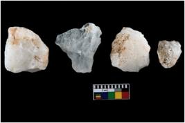 | Description / विवरण | A specimen of a fluted core having several broad fluted marks indicating the detached blades from it |