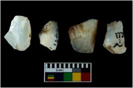 | Description / विवरण | Four worked utilised cores. Flakes removed from few sides. Most of them are uneven and few are tapering at one end. |