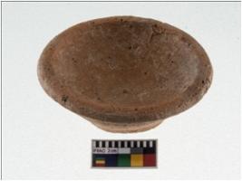 | Description / विवरण | A complete specimen of a red ware terracotta lamp with flat circular rim and circular flat base which shows a clear string marks where it has been cut from potter s wheel. It is fine fabric well fired. |