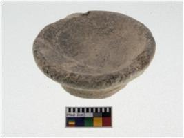 | Description / विवरण | A complete specimen of a grey ware terracotta lamp with tringular rim with shallow inner wall and circular flat base which shows a clear string marks where it has been cut from potter s wheel. It is medium fabric well fired. |