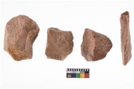 | Description / विवरण | A specimen of flake tool with prominent flaking marks. It made up of a short flakes with sides trimmed. It is rectangular in shaped |