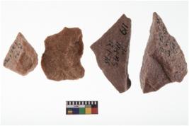 | Description / विवरण | A specimen of flake tool with prominent flaking marks. It made up of a short flakes with sides trimmed. It is rectangular in shaped |