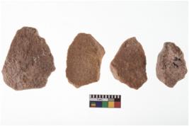 | Description / विवरण | A specimen of flake tool with prominent flaking marks. It made up of a short flakes with sides trimmed. It is rectangular in shaped |