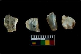 | Description / विवरण | Four worked utilised cores. Flakes removed from few sides. Most of them are uneven and few are tapering at one end. |