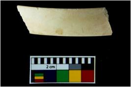 | Description / विवरण | A broken fragment of a undecorated shell bangle. It is creamish in colour with rectangular cross section. |