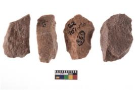 | Description / विवरण | A specimen of flake tool with prominent flaking marks. It made up of a short flakes with sides trimmed. It is rectangular in shaped |