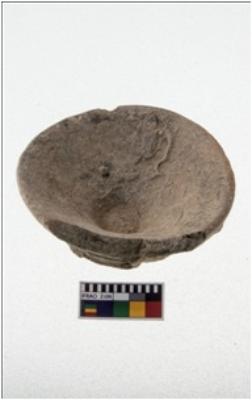| Description / विवरण | A partially broken specimen of chocolate slip ware terracota lamp with featureless rim shallow inner wall ,circular flat base which shows a clear string marks where it has been cut from potter s wheel. It is fine fabric well fired. |