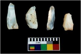 | Description / विवरण | Four worked utilised cores. Flakes removed from few sides. Most of them are uneven and few are tapering at one end. |