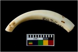 | Description / विवरण | A fragment of a decorated shell bangle. It is creamish in colour with rectangular cross section. |