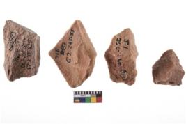 | Description / विवरण | A specimen of flake tool with prominent flaking marks. It made up of a short flakes with sides trimmed. It is rectangular in shaped |