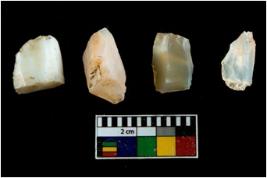 | Description / विवरण | Four worked utilised cores. Flakes removed from few sides. Most of them are uneven and few are tapering at one end. |