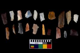 | Description / विवरण | There are n-20 of microliths, among them 4 are quartz, and 16 are of chert. Some of them are partially broken. They show variation in colour, size and shape. Some of them are blunted back blades, points, triangles, trapezes, crescent and truncated blades. |